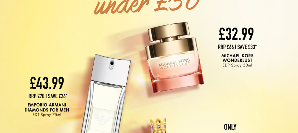 •Savings shown against RRP. Emporio Armarni Diamonds For Men EDT Spray 75ml £43.99, RRP £70.00, £58.65 per 100ml. Michael Kors Wonderlust EDP 50ml £32.99, RRP £66.00, £65.98 per 100ml. Vera Wang Princess EDT Spray 100ml £19.99, £19.99 per 100ml. Offer ends 6th April 2026. Subject to availabilty. Please ask in store or see online for details.