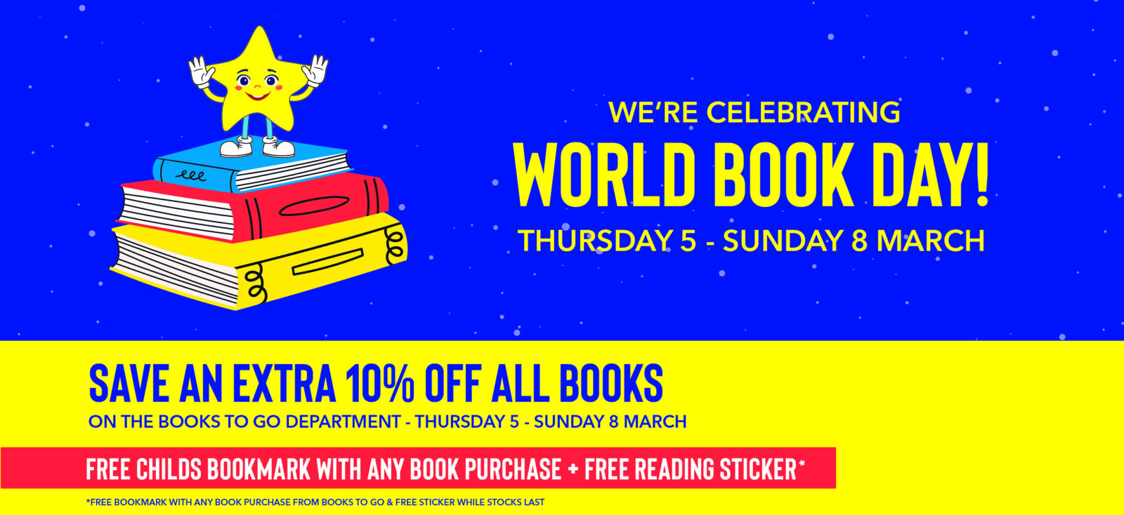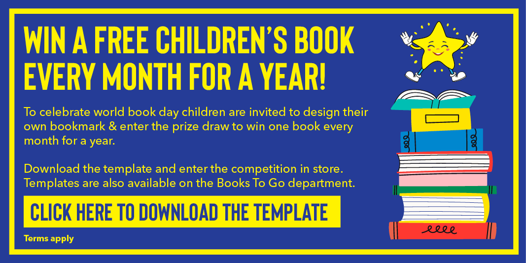 To encourage your little reading stars all children will receive a free child’s bookmark with any book purchase from Books To Go & a free reading sticker (while stocks last) at Colne, Walsall & Newcastle. Offer valid 05/03/26 – 08/03/26
